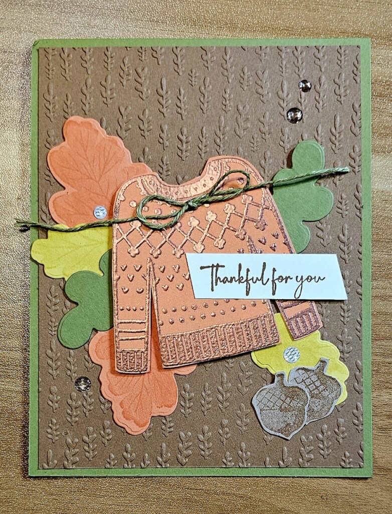 Have you tried the new Two tone cardstock? It is a game changer. It has a white core so after you emboss, taking a sanding block or in this case a nail buffer and sand off some of the color and wellah- an amazing background! Add a Little Wink of Stella- because who can say no to a little shimmer?