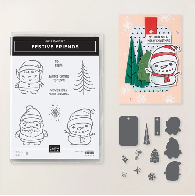 The Festive Friends Bundle from Stampin’ Up! is the perfect pair for your holiday crafting. It features classic holiday icons like Santa, a snowman, pine trees, and more. Create adorable scenes with the perfectly sized Christmas characters and use the detailed dies to build festive backdrops. Stamp your way to a merry little Christmas with this festive duo.